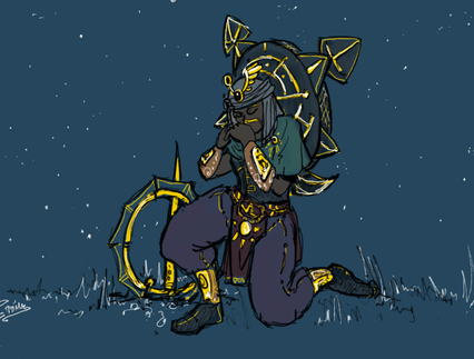 Melee dps skin concept for Bloodline Champions. My fanart spree continues. This is an aggressive Ravener, all spike shield and in your face, how I imagine the Ravs in doubleheal comps might get. Artwise, this one came out a lot more lineart-y than any of the others have been so far. Maybe I'll color it later.Bloodline Champions is a f2p arena game. Check out [link] if you want to know what I'm talking about.