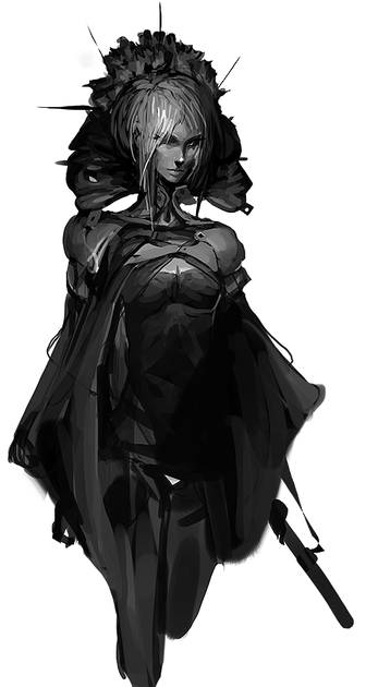 This really makes me think of chess pieces because of the way you designed her outfit/armor. Love it, and of course your shading is always fantastic!