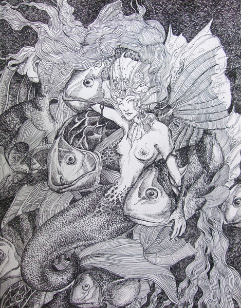 My sister commissioned me to make a mermaid drawing since her friend (who digs mermaids) had a birthday coming up. Quite enjoyable but time consuming.Medium: Graphite and Colored Pencils