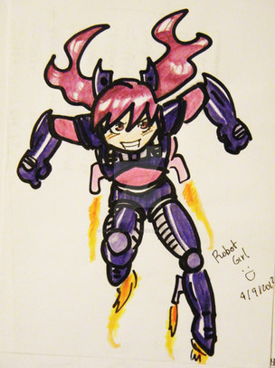 "Ravage, eject! Operation: DISTRACTION!!!"A bit of weirdness here. This was done immediately after Shoujo Megs in the middle of the night. Our coffeemaker was broken and won't be repaired for a while, Instant coffee just won't do. So I was having this weird idea of Soundwave-chan and the cassetticons... Bam!