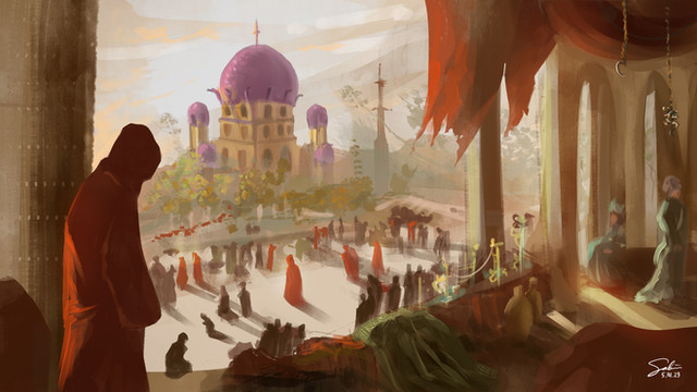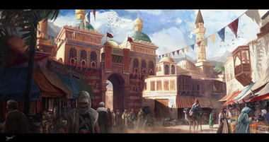 Isfahan, currently one of the largest cities in Iran, has been the capital of numerous Persian dynasties. It's glory started after the Islam's invasion of Persia and continued as it expanded and developed through the rule of different kings. Right now, it holds a great many unique Islamic buildings and the whole city is much like a museum filled with historical sites.Its the birth place of great people and interesting stories. I was looking at the book Medicus - its called The physician in English I believe - and the mood in the book inspired me to do a paint a scene on a every day scene. The scene painted here is all based on existing buildings in the city and the color scheme is closely followed.