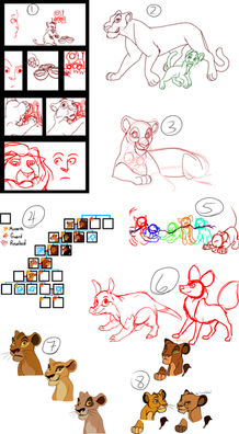 It's when I clean up the rough sketch and improve the perspectives and expressions. Makes it easier to get the line-art look nice later.