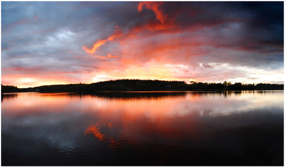 This is taken two years ago in southern Finland, in the place called LahnajΓ€rvi where our summer cottage is. That was such a splendid sunset, whole sky seemed to be on fire. I haven't seen anything like that after that night, luckily I had my camera with me.