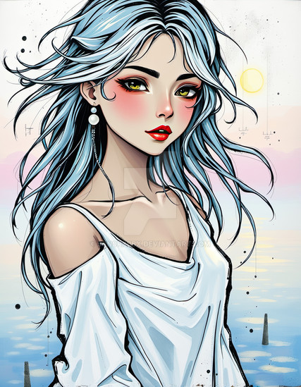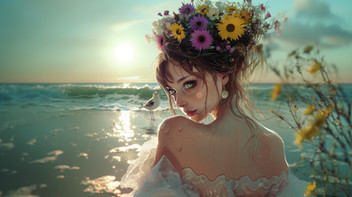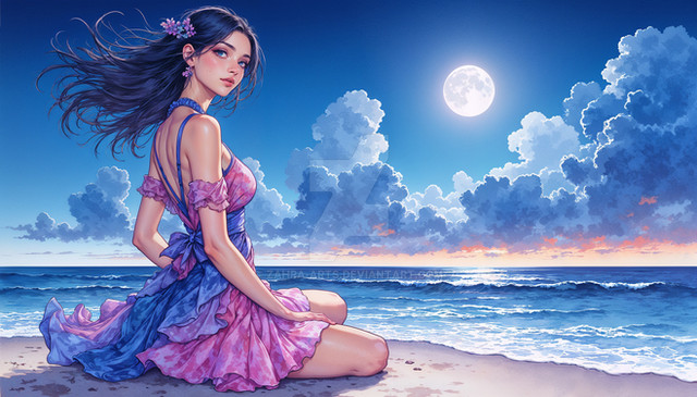 #sea #drama #beach #digitalpainting #fantasyart #digitalart #beauty #portrait #bow #girl #screensaver #sun #sunshine #violet #wallpaper