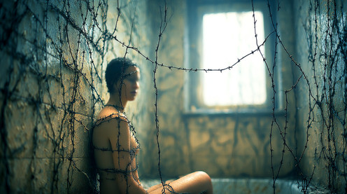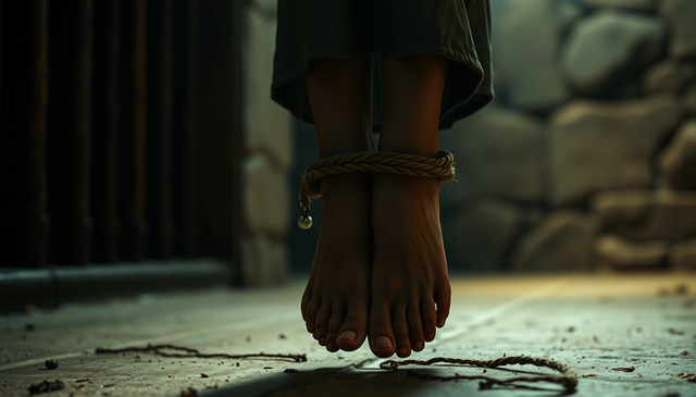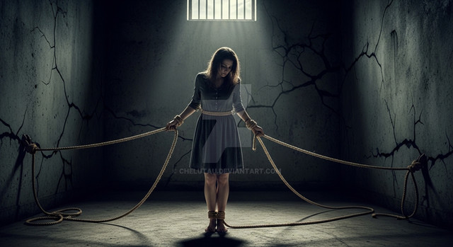 #ai #bondage #digitalart #freedom #photography #photoshop #psychological #boundgirl #feetbarefoot #aiart #synthography #irisobscura