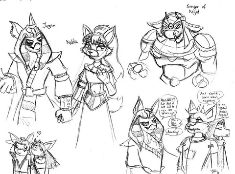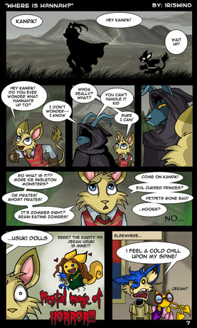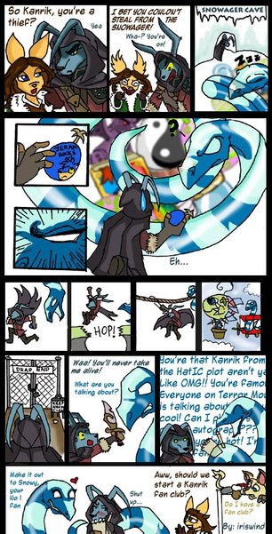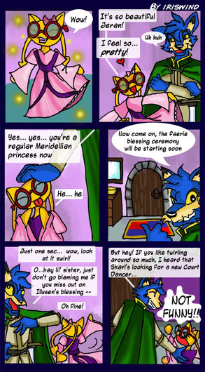 A high resolution version of the last panel in page 4 of Legends of Neopia. I felt that a lot of detail was lost when I shrank the image to fit into the panel. So here it is in full glory!I actually redid this panel because I did not like the original version I did. It was supposed to show Jhudora doll and Illusen doll, but... it just didn't seem 'impressive' enough. So I drew them life-size! Their arms were a murder to co-ordinate to the body... I think they may look funny.