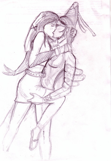 Last night I was thinking that you see cute happy kissing pictures, and you see hot naked action pictures, but nobody ever draws the steps in between. So. Xel and Lina totally making out.