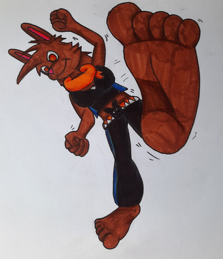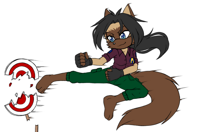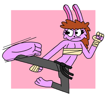 Colour Commission for RicoWolfDog of his character Julie Hareheart doing a karate kick.Hope you like it, Rico.
