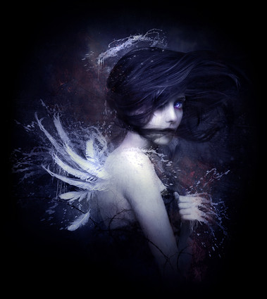 The image gives me an overall sense of wistful melancholy. It is interesting to me though that after looking at the image for some time I do get a sense that there could be a darker hint of the branch strangling her at the command of some magical person that she is looking at and she is accepting her fate.