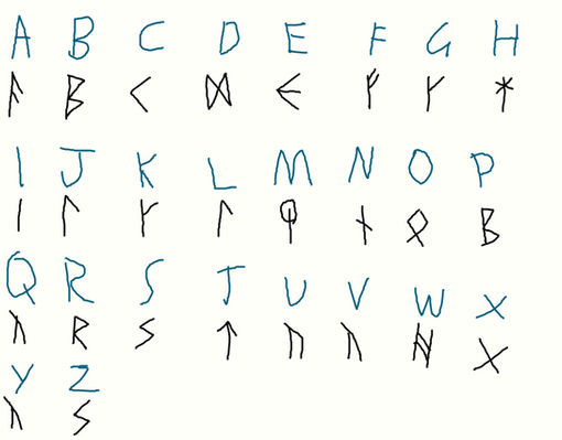 In a story of mine, Undead invaded a world, trying to consume it. They used this runic alphabet. It is said that their language was so terrible that anyone trying to read it became mad.