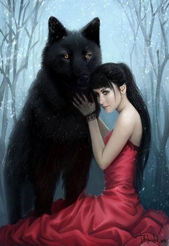 Beautiful! The wolf and woman staring at me, the viewer, is a wonderful touch!