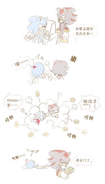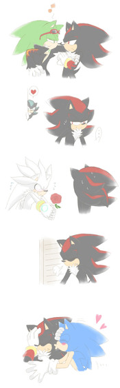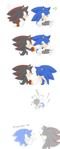 shadow woke up and hi se sonic in the bed shadow is in shok 1 sec, and he scream “Why are you in my bed" and sonic woke up -hu? haw!-shadow hit sonic in the face