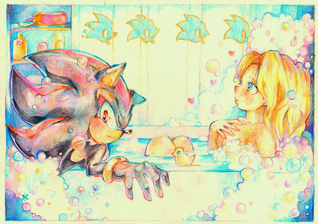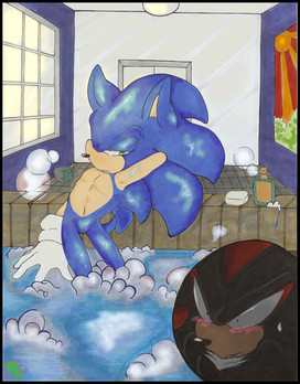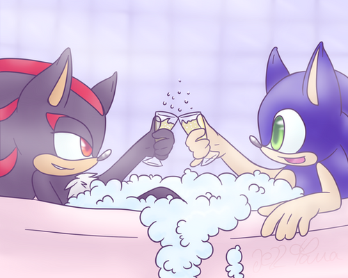 Wow! that bathtub is a bit large so the both could fit somewhat fine! Guess Shadow isnt really that happy to be in there as Sonic XD