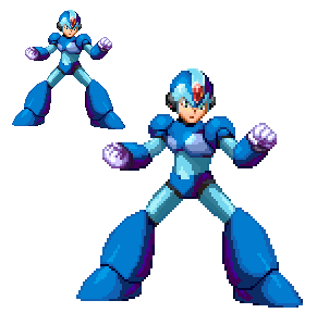 I am introducing Style M, a new style about double the size of Style S. Here X's height is 160 pixels which means 1px is exactly 1cm. While doing this I noticed that X's belly and crotch are shrunken in comparison to humans, while his legs are longer in a way the knee line is above the expected. That also applies to many other humanoid Reploids. Because of that, trying to draw X with human proportions, like as if it was a human wearing the armor, makes him inevitably weird, since all of his artwork portrays him with that specific body structure.Related content
