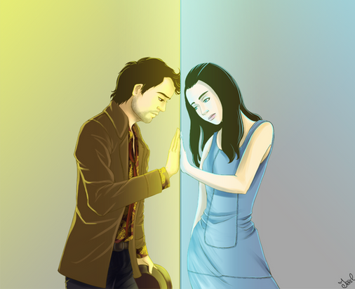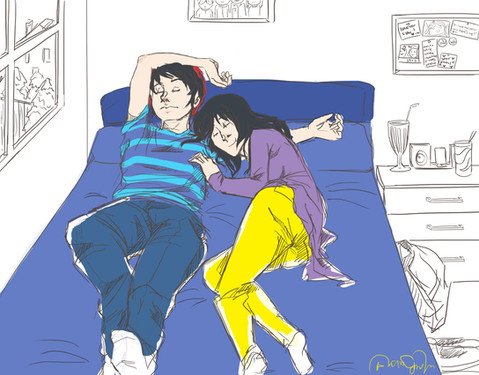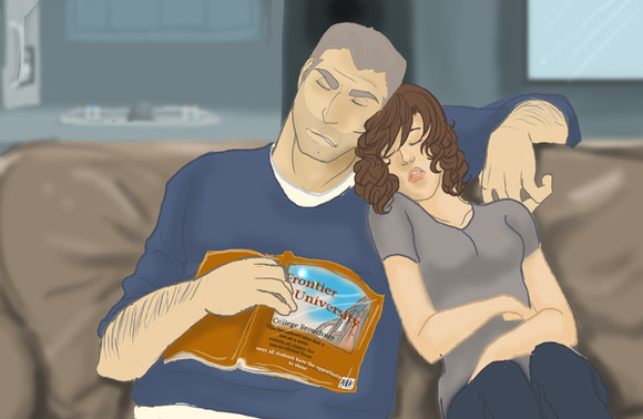You've done a nice job of portraying the live action characters as illustrations. That's really hard to do. And I could totally see the writers of the show pushing something like this, where she secretly listens to his lectures. (Again, a last season/episode revelation, though.)