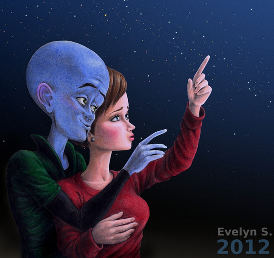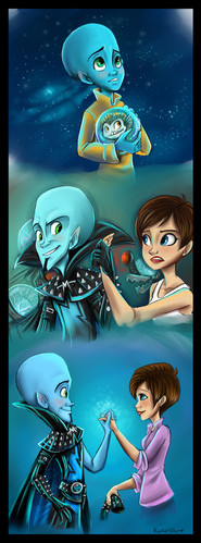 I LOVED THIS MOVIE O_O I thought Megamind as a kid was the cutest thing ever and I do wonder what would have happened if Roxanne and him had gone to the same school.I tried something different with my inking this time (tiny lines!---> [link] )