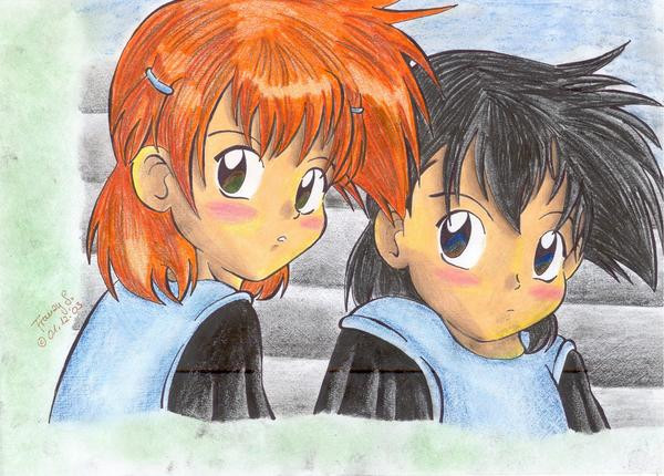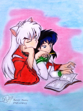 Human Inuyasha and Kagome doing homework...this is like... the fanart of a fanfiction I plan to doMade with color pencils.
