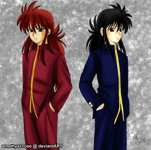 Aww! I love his new red outfit! Really kick'n, but what's the deal? Why do they look.... I dunno...depressed? I know I'd b happy to have Inuyasha helping me with my homework.... ^_^; Even if he doesn't know what algrebra is....heh heh