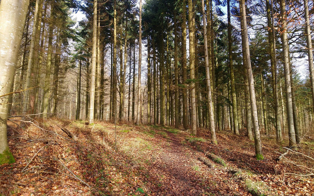 A pine forest near Hawangen, in the southwestern part of Bavaria (district of Swabia).location: Hawangen, Swabia, Bavaria, Germany.
