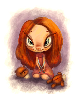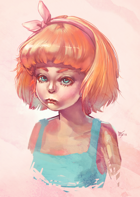 This is a study from a photo of a doll! I wanted to take some key factors of the doll and twist them up in my own way!I personally think the hair is a bit too flat (cartoony) in comparison to the other parts..