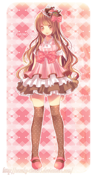 This is my entry for 's Outfit Contest! I got inspired by one of my favorite drinks, Hot chocolate! :>When i get hot chocolate i always order it with whipped cream, the white ruffles represent that! Also, the powdery like, brown texture on the ruffles is meant to be the cacao powder that get's sprinkled on top of the whipped cream! :> .. I choose red to go with the color of chocolate and also because it was one of the favorite colors of Nasha! :> I kept the whole dress a little casual and not over the top with choco-thingy's and dingy's everywhere.. I wanted it to appear rather elegant instead of cute :> ..Hope you like it Little-suika!!