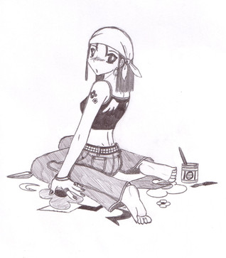 For those who can't distinguish, she's holding a coffee-in-can drink. The scanning levels are too rough. That's probably the problem with scanning, unlike digital stuff, but I still wanna go with this coz I like trad work.