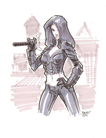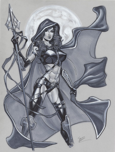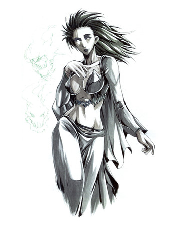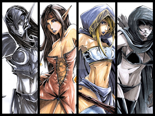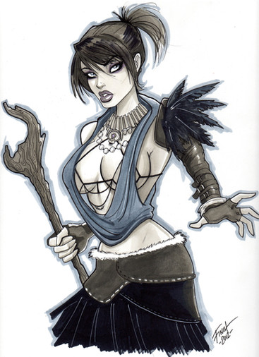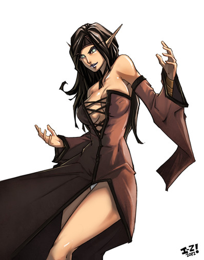very nice artwork, but please, if you're going to draw a Drow, make it actually look right. Drow are GRAY skinned with WHITE/SILVER hair.