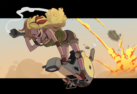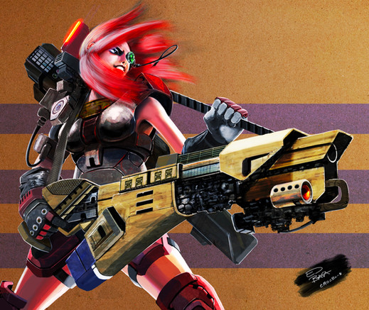 Alternate version of my entry for Character design Challenge on fb for this month's subject- Dragon Ball. Here she's sporting a mechanical left arm, riding on Wreck-Gar blasting some decepti creeps.Related content