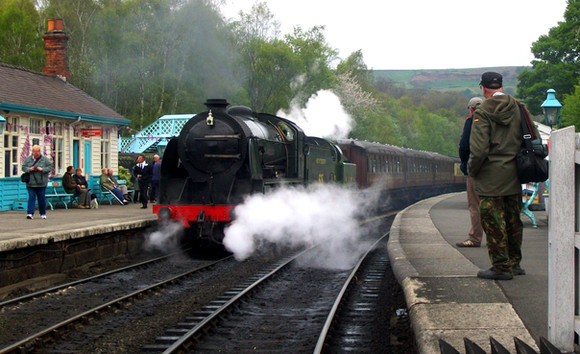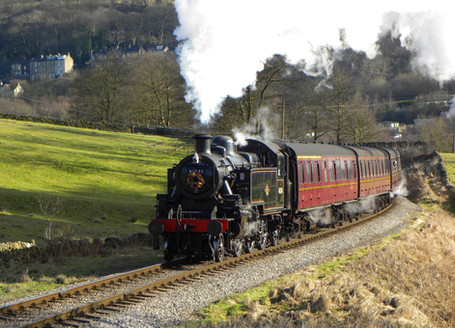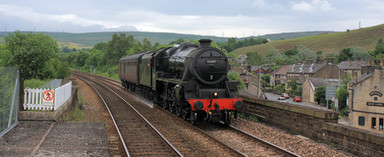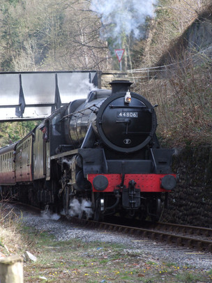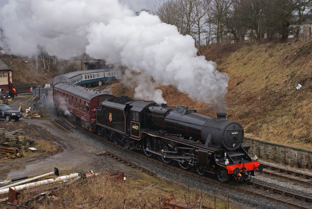 LMS Class 5MT 4-6-0 no 44871 and POB at Walsden, West Yorkshire.From Grosmont NYMR to Bury ELR.