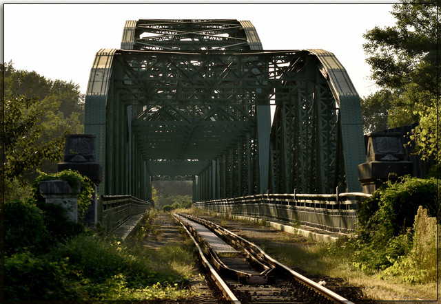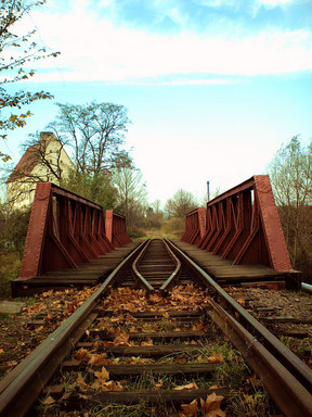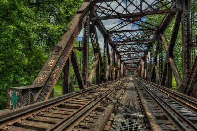 Tough call between this and the B&W version. The B&W has nice tones and contrast but the rusty rails in the color won out. Nice converging lines on both.