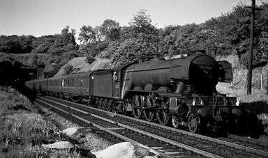 LMS Princess Royal Class 6201 "Princess Elizabeth" roars through another forgotten Yorkshire branch line station with the Scarborough Flyer.Probably the last mainline shot of her before her boiler ticket expires.