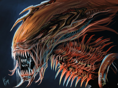 AWESOME painting. You did very good work with the light and shadows on this Predalien. This is one of the best "portrait" pictures I've seen of Predalien.