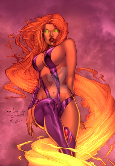 Starfire!!! Well Starfire/Koriand'rI drew this in Copic Markers. I added this texture: [link]