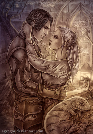 Gwelwen(moon elf, Mystic Knight) and Wulfram(human, Paladin) are characters from NWN2 universe. COMMISSION INFO