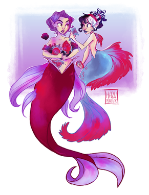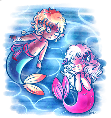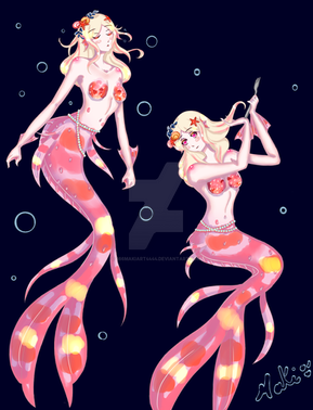 I wanted to draw some mermaids and I found my inspiration searching some photos on google images of fishes xDI'm in love with them >.< I had so much fun drawing these two mermaids.