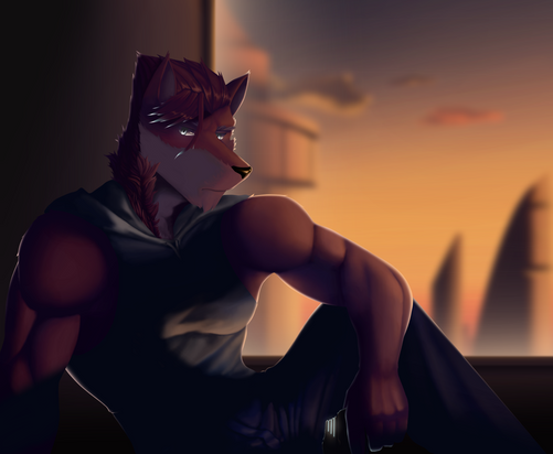 #furry #furryart #furryfandom #anthro #anthrofurry #anthropomorphic #balcony #canine #digitaldrawing #dingo #shaded