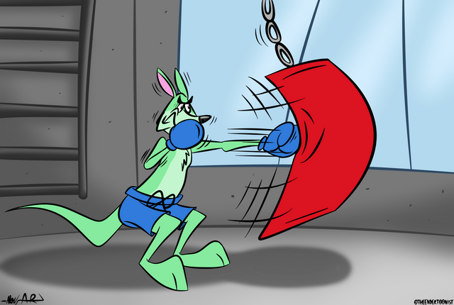 #anthro #athlete #bag #colored #digital #fighter #flat #furry #kangaroo #kick #mma #nestle #punching #temiree #anthroart #anthropomorphic #marsupial #punchingbag