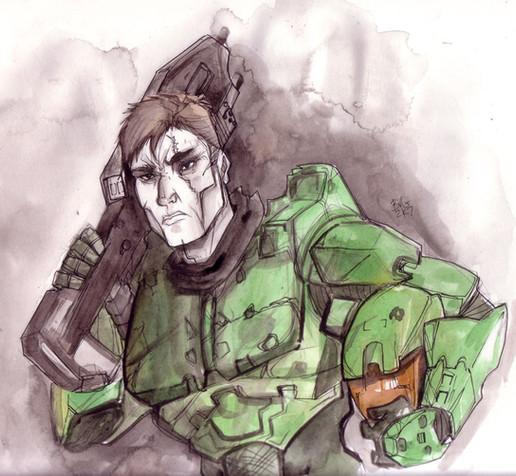 Colored in *Djehuti 's Master Chief sketch. [link]I'm REALLY happy with how it turned out.