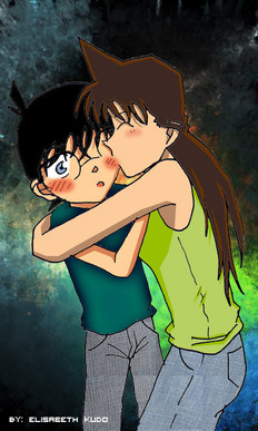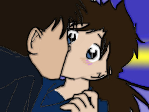 sigh~~ don't you wish this would happen already with those two?? But..oh yeah..Shinichi is still Conan..oh well...I actually copied this pose from a pic I saw of Kaito kid kissing a girl in the OVA ( Conan VS Kid VS Kaiba ) Hilarious!! go watch!!Anyway..I kept thinking how nice it would be if Shinichi was brave enough to do that to Ran...never mind some random girl he doesn't know like what Kid did!! ..pencil ..pen then photoshop!