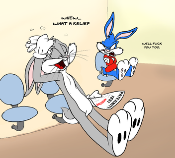 Love the syringe and the blood on Bug's coat... I like this Bugs a lot better than the original. Little does he know he created a Werewolf Wily who's eating Porky Pig in the backyard...