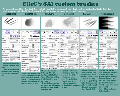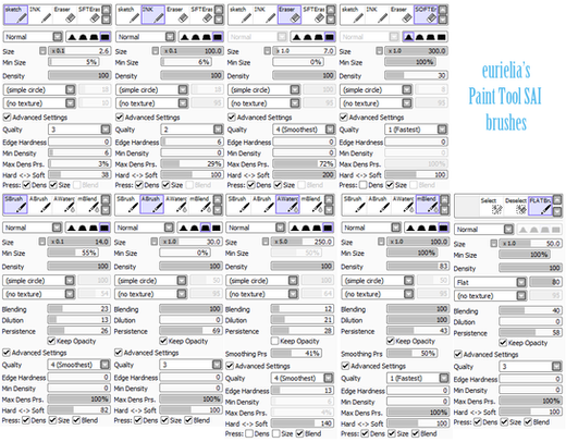IT SAYS IN THE DESCRIPTION HOW TO MAKE THEM, YOU DONT DOWNLOAD THEMNewer versions of SAI don't have some brush settings but you can download them here: comments.deviantart.com/1/4307…