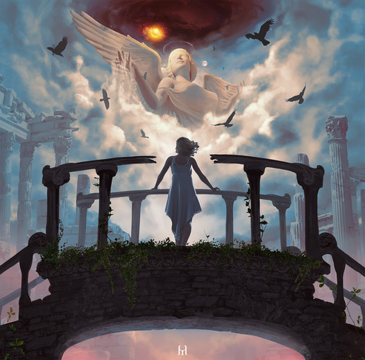 Beautiful work on this page, Awesome imagery with the clouds and planets and Yes you did an awesome job on creating her soul leaving her body. Job well done!