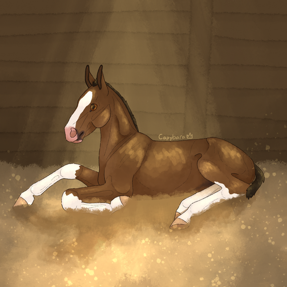 Foal Quite silly and playful as of now, doesn't take anything seriously despite his mother's warnings not to try and chase squirrels or that he can't fly and thinks humans are just giant play things that he gets to chase after him.