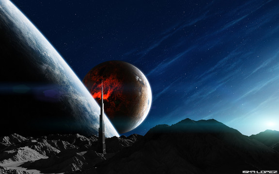 Hoy en dia se han descubierto miles y miles de planetas fuera de nuestro sistema solar, los llamados exoplanetas o planetas extrasolares. Fuera de nuestro sistema solar existen cientos de planetas que poseen caracteristicas comunes a la de nuestro planeta Tierra. En esta obra he querido hacer ver un planeta parecido al nuestro el cual ha abandonado su sistena planetario y esta a mucha distancia de su sol, por tanto su superficie y la de sus lunas estan congelada. El sol, al estar muy lejos solo se ve como una pequeΓ±a estrella con una halo de color aguamarina, al reflejar su luz sobre la atmosfera de este planeta crea una aurora y una especies de particulas brillantes. Espero que os guste esta obra la cual hize con mis propios recursos y espero que os gusteRelated content