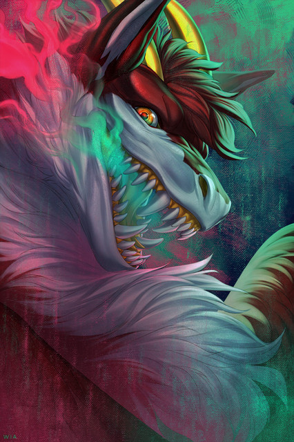 Wow, this piece is incredibly beautiful! I love the way you use very high contrast, saturated colors in a very classy, stylistically pleasing way, and your linework is gorgeous! It gives so much character to every art piece you post.