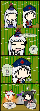 Mokou must have learned from the greats. Y'know, like Jezebel, Marie Antoinette, and let's not forget Custer. XPThis makes my 25th Walfas comic so far. Sheesh. O.o