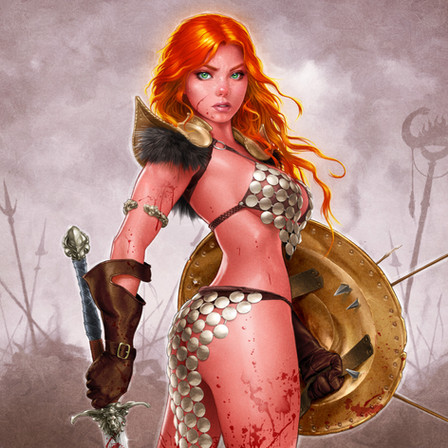 It makes me think of something I'd see in Heavy Metal Magazine, the promise of sex and violence and so much more. Though I think you could go a little more realistic on the armor if wanted to, as long as it was bad ass looking then it would still be sexy. Rule of thumb anything hot and bad ass is sexy.
