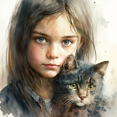 #cat #cuteadorable #cutecat #cutegirl #girlportrait #happiness #kindness #watercolor #watercolorpainting