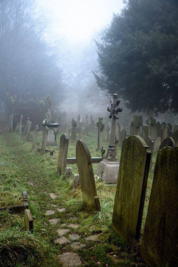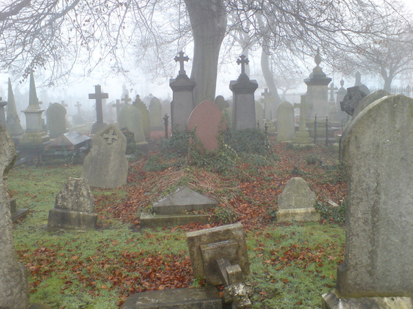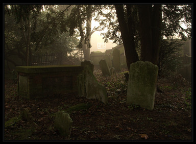It got a bit colder today so there was some chilly fog too.I couldn't miss the opportunityCemetery near St.Mary at Finchley church,London.