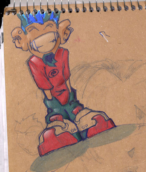 and theres just stuff explodin out of his bag! Yeah, this is one of the best drawins i've seen from you man!
